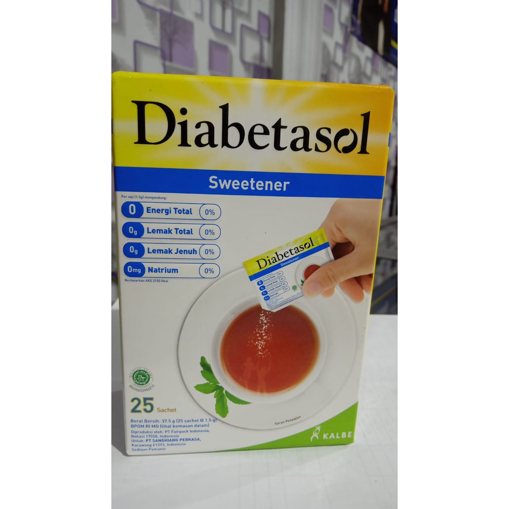 Diabetasol Sweetener untuk penderita diabetes atau orang yang membutuhkan makanan berkalori rendah. Diabetasol dapat digunakan untuk minuman dingin atau panad dan dapat digunakan untuk memasak