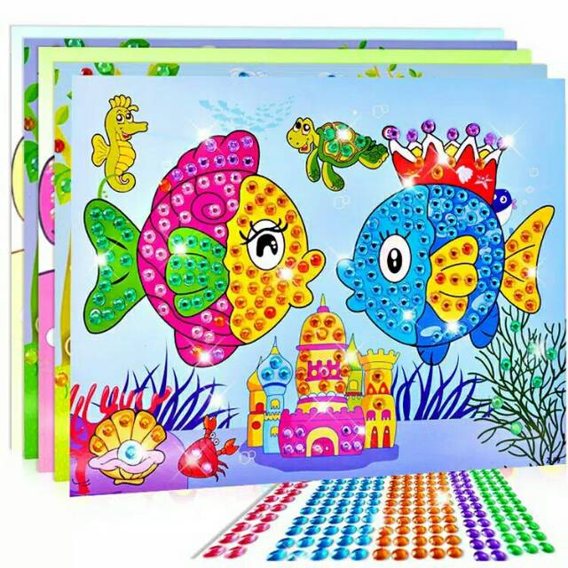 Mainan stiker tempelan DIY manik bulat diamond untuk anak anak, tempelan untuk melatih keterampilan tangan anak dan bonding dengan orang tua, tempelan dari bahan manik bling bling. Tersedia 20 motif