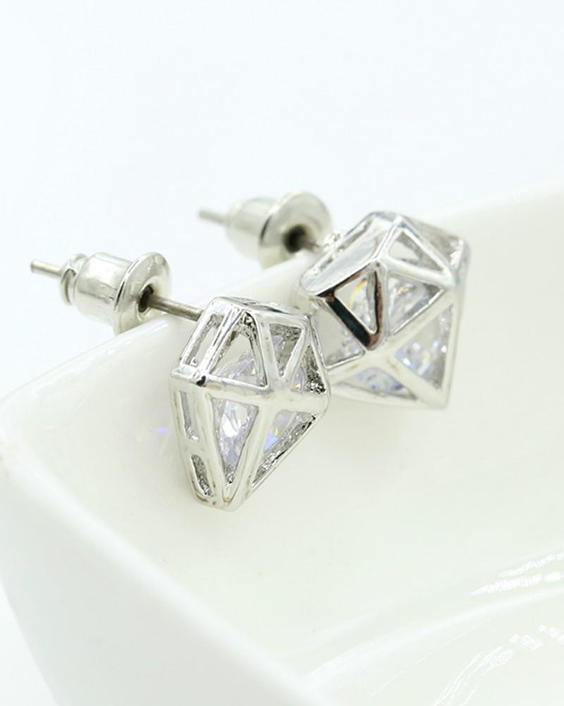 Diamond Shped Rhinestone Earrings, Silver