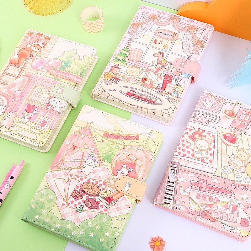 Diary ini cover terbuat dari bahan tebal, dilapisi dengan hasil cetakan busa glossy, sehingga mudah di lap ketika kotor. buku ini memili kertas polos, garis, dot & grid berwarna dan motif.