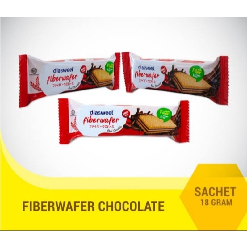 Diasweet Fiberwafer Chocolate makanan bebas gula, cocok untuk diet. kemasan 18g.