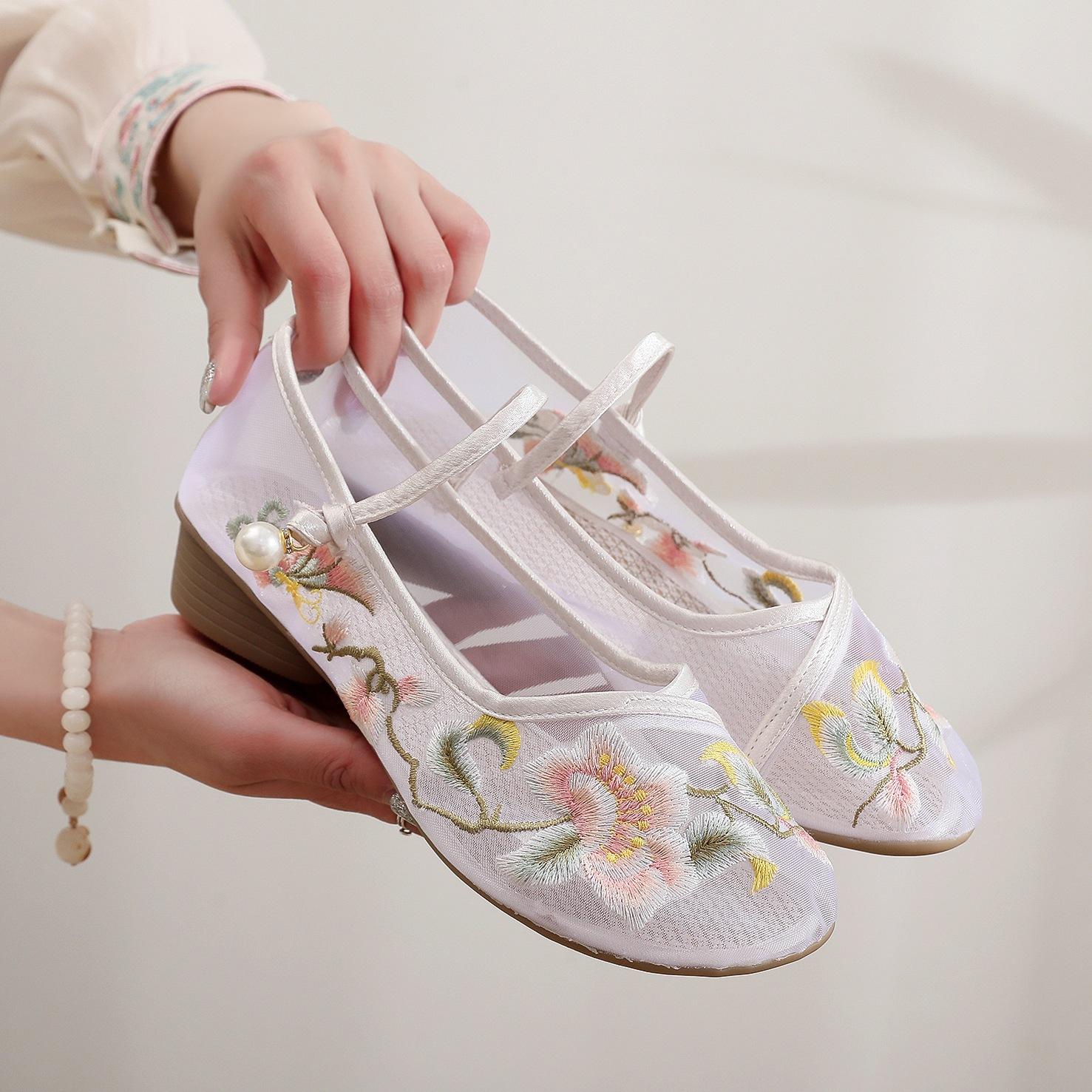 [Die Man] 2024 Новые туфли из сетчатой ткани в китайском стиле, темпераментные ципао, старые пекинские ретро-туфли с вышивкой, старинные туфли 40 белый