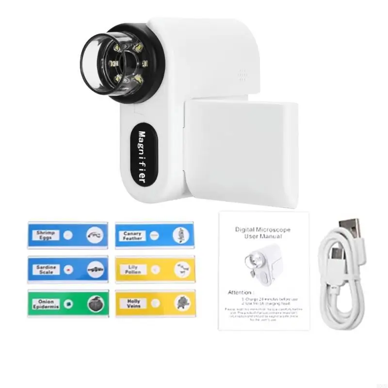 Digital Microscope 1200X USB Microscope Coin Microscope with LED Light 2inch LCD Screen Microscope for Kids Adults B03E