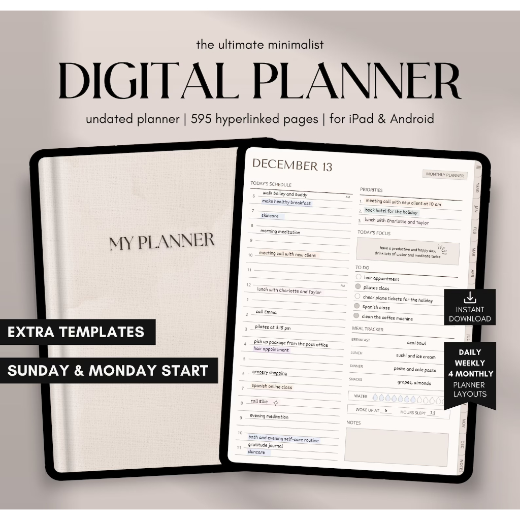 Digital Planner Undated, iPad & Android Planner, GoodNotes Planner, Digital Calendar, Daily, Weekly, Monthly Journal, 2024 2025 iPad Planner