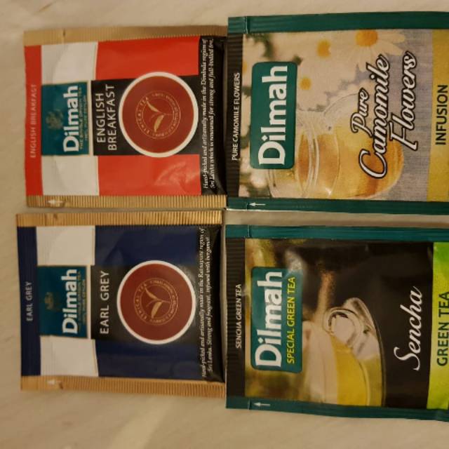 Tersedia variasi rasa Green Tea, Pure Camomile Flowers, English Breakfast, Earl Grey