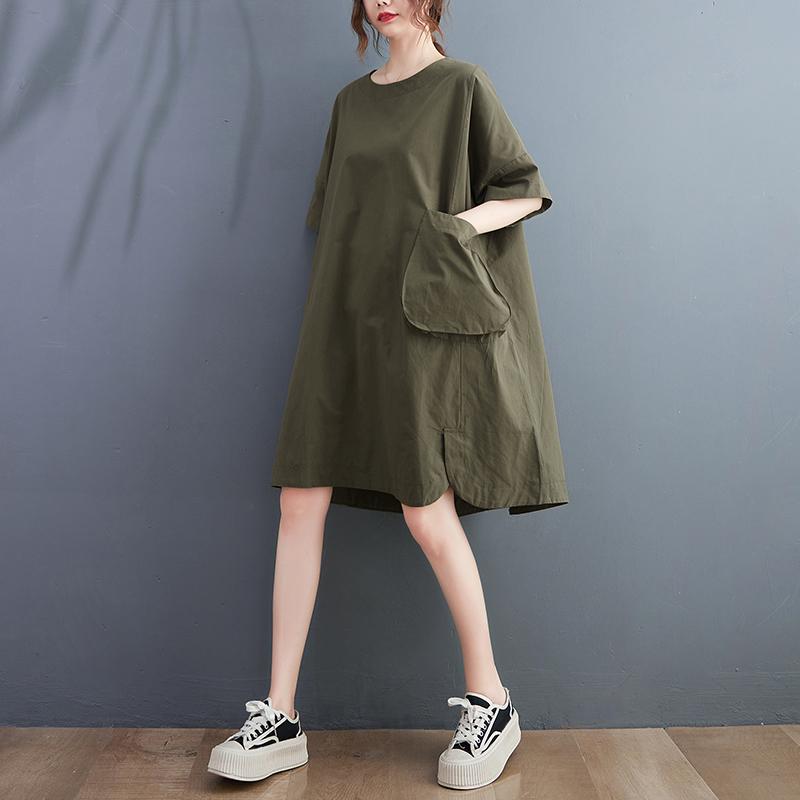 DIMANAF 2024 Новое платье больших размеров Летнее женское свободное однотонное пляжное базовое хлопковое повседневное платье-футболка большого размера с карманами One Size зелёный