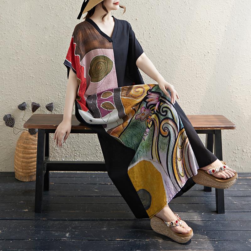 Dimanaf 2025 Лето Платье больших размеров Базовое Женское Повседневное Свободное Длинное Винтажное Новое Платье с цветочным принтом Макси One Size