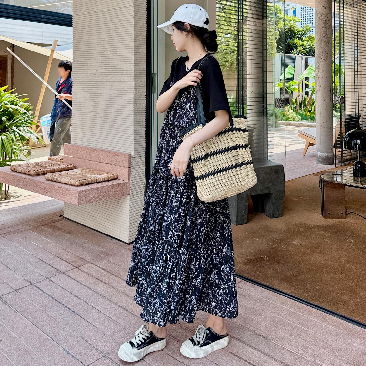Dimanaf 2025 Платье размера плюс, летнее женское винтажное свободное платье с коротким рукавом и цветочным принтом, базовый стиль, праздничное новое платье 3XL чёрный