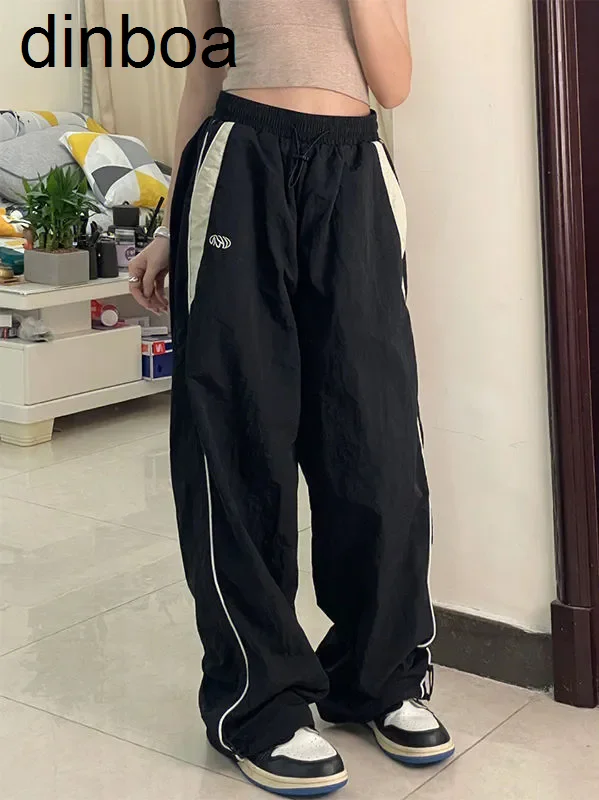 Dinboa- Harajuku ретро уличные повседневные Леггинсы хип-хоп спортивные брюки с эластичным поясом с высокой талией свободные прямые брюки