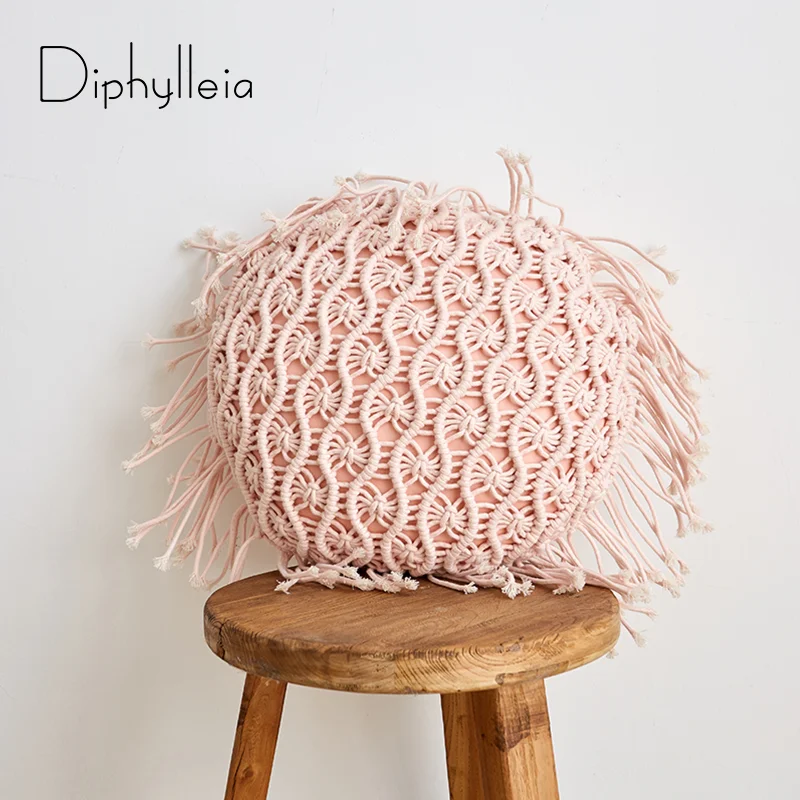 Diphylleia 2024, подушка для макраме, ручная работа, плетеная хлопковая нить, Богемская геометрия, в этническом стиле, круглая наволочка, розовый цвет