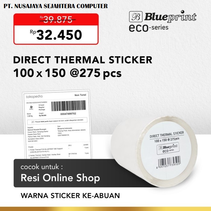 Direct Thermal Sticker 100 x 150 Stiker Label BLUEPRINT ECO 275 ROLL