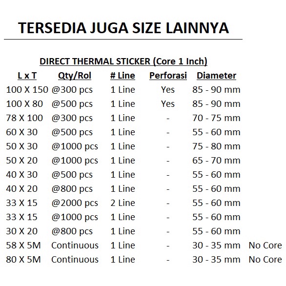 Silakan cek size lainnya di etalase / kategori : Label Thermal