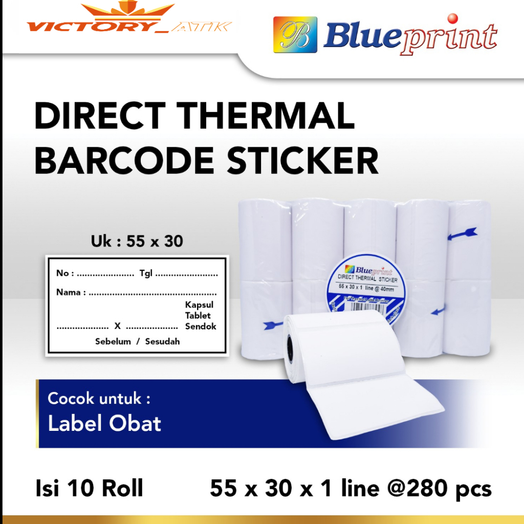 Direct Thermal Sticker 55 x 30 BLUEPRINT 55x30 mm 1 Line - 10 Roll