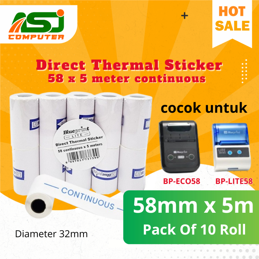 Direct Thermal Sticker Label BLUEPRINT 58mm x 5 Meter Continuous - 10 Roll
