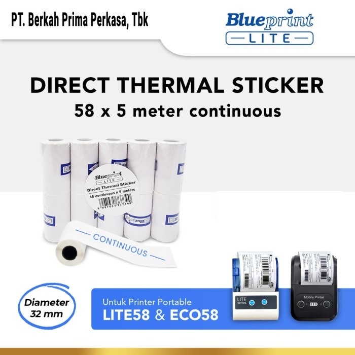 Direct Thermal Sticker Label BLUEPRINT 58x5 Meter Continuous - 1 roll