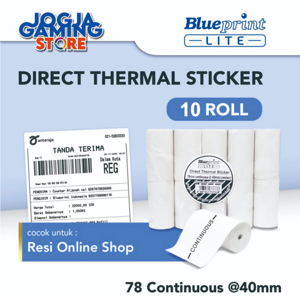 Direct Thermal Sticker Label BLUEPRINT 78 Continuous @40mm - 10 Roll 78x9M