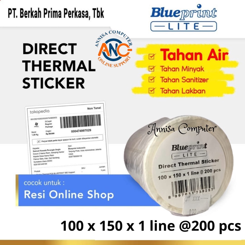 - Bahan Baku : Direct Thermal Sticker Lite