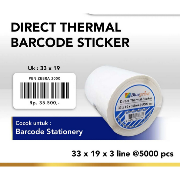 Direct Thermal Sticker Label Barcode BLUEPRINT 33x19 mm 3 Line 5000pcs