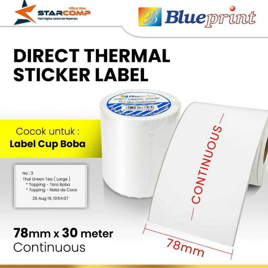 Direct Thermal Sticker Label Continuous BLUEPRINT 78x30 Meter