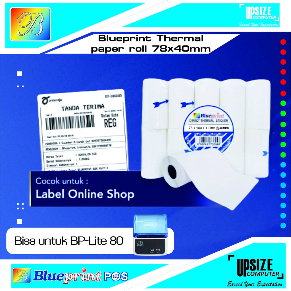 Direct Thermal Sticker Label Portable BLUEPRINT 78 Continous @ 40mm