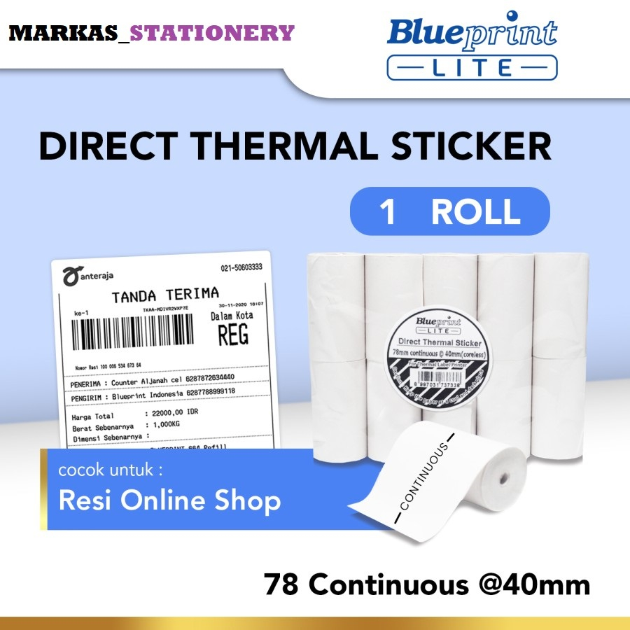 Direct Thermal Sticker Label Portable BLUEPRINT 78 Continous @40mm lebar 80 continous