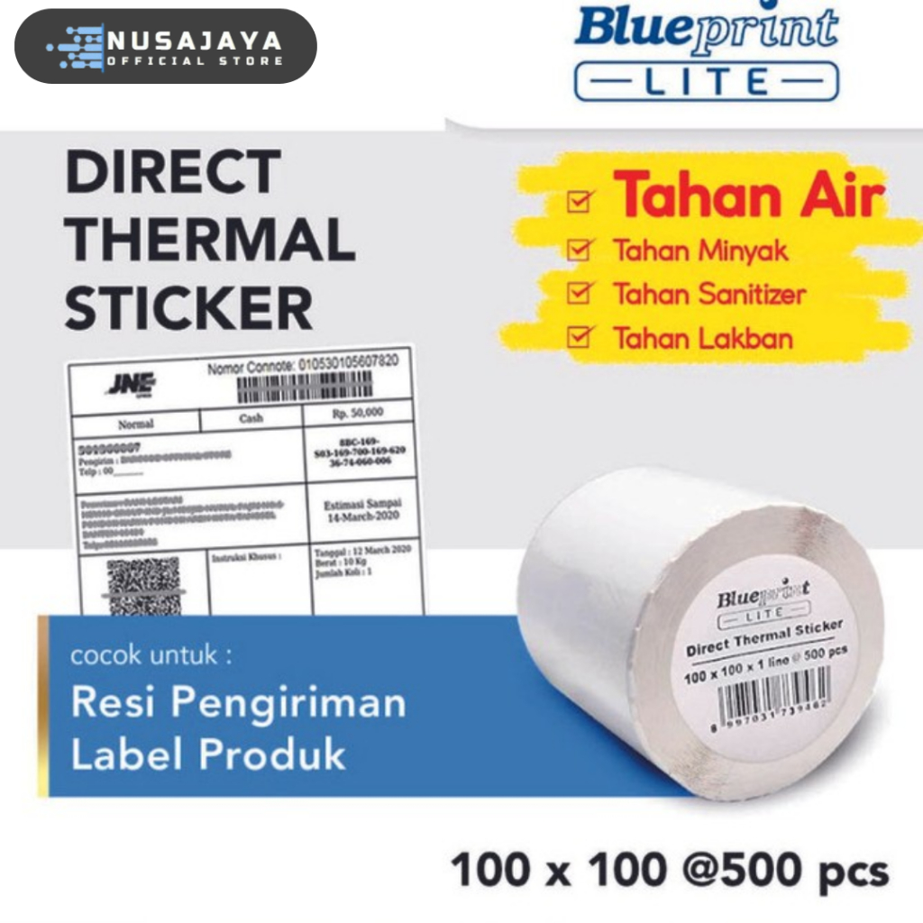 Direct Thermal Sticker Label Resi BLUEPRINT Lite 100x100 mm 500Pcs