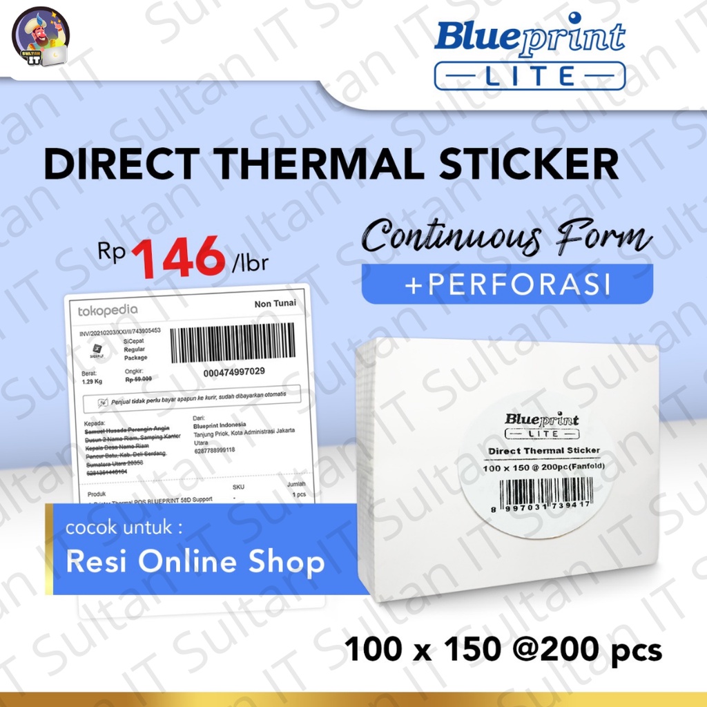 Direct Thermal Sticker Label Resi BLUEPRINT Lite 100x150 mm 200Pcs CF