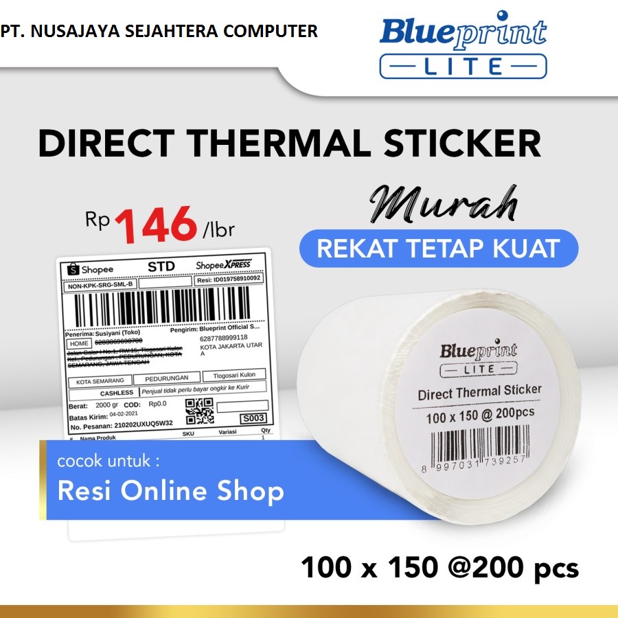 Direct Thermal Sticker Label Resi BLUEPRINT Lite 100x150 mm 200Pcs