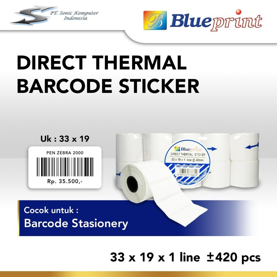 Stiker Barcode Label / Sticker Barcode Thermal BLUEPRINT Ukuran 33mm X 19mm
