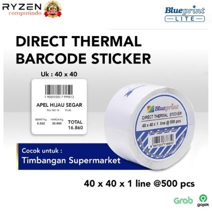 Stiker Barcode Label / Sticker Barcode Thermal BLUEPRINT Ukuran 40mm X 40mm