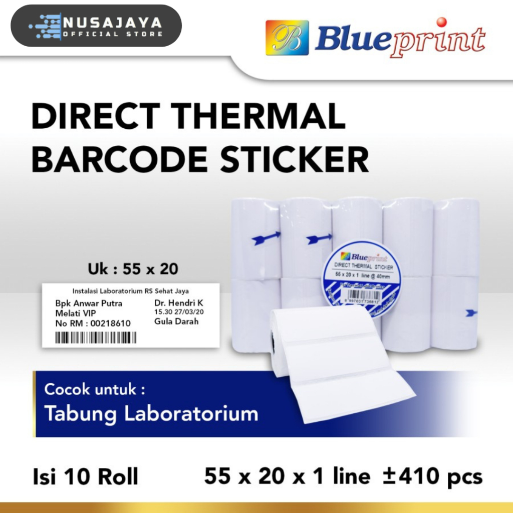 Direct Thermal Sticker / Label Stiker BLUEPRINT 55x20x1 Isi 10 Roll