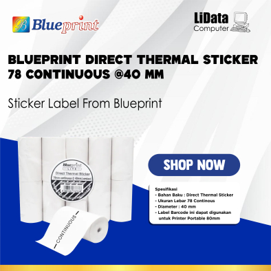 Direct Thermal Sticker , Label Stiker Portable BLUEPRINT Lite 78 Continuous @40mm - 1 Roll