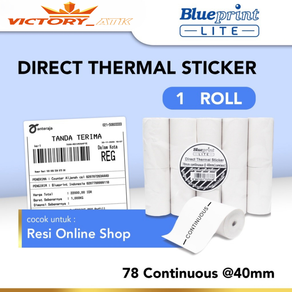 Direct Thermal Sticker Portable 78x9 Meter BLUEPRINT Lite 78 Continuous @40mm - 1 Roll