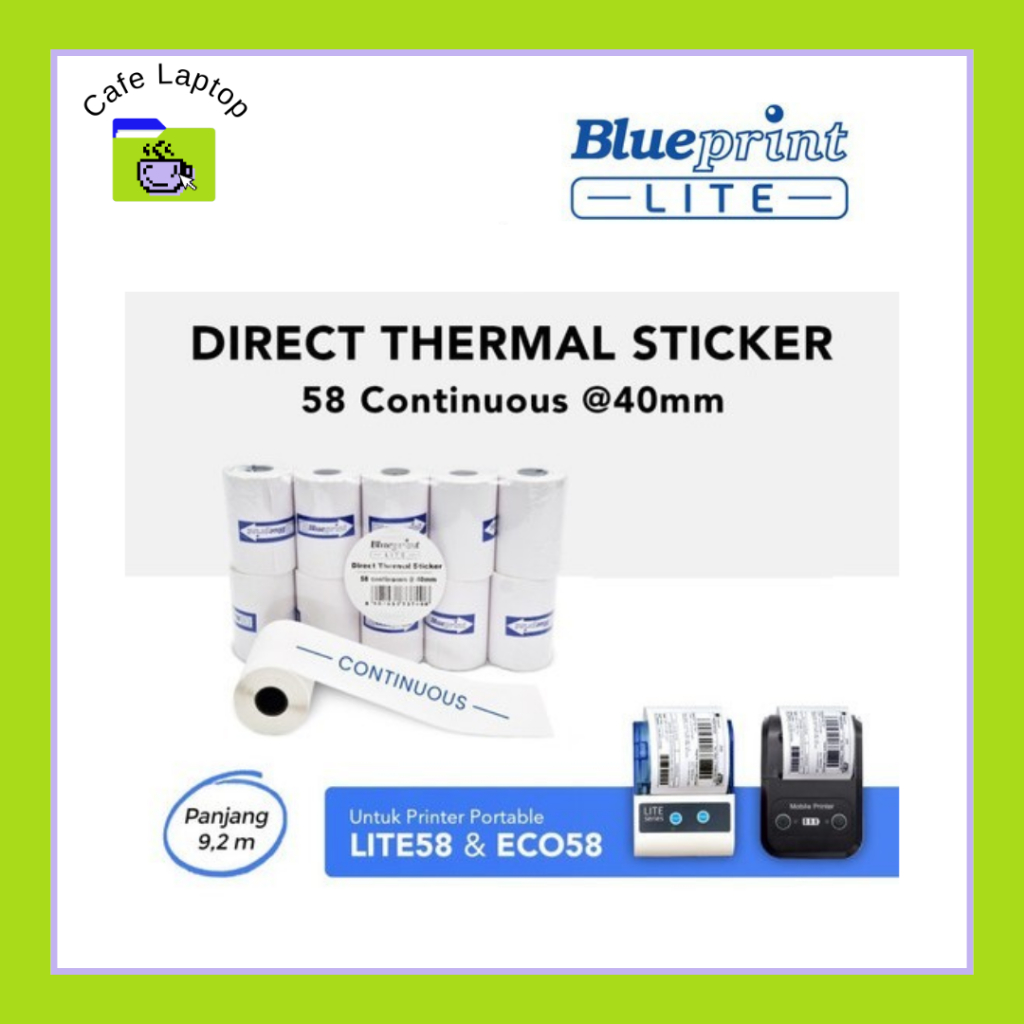 Direct Thermal Stiker Blueprint Lite 58 Continuous @40mm Sticker Label 1 ROLL