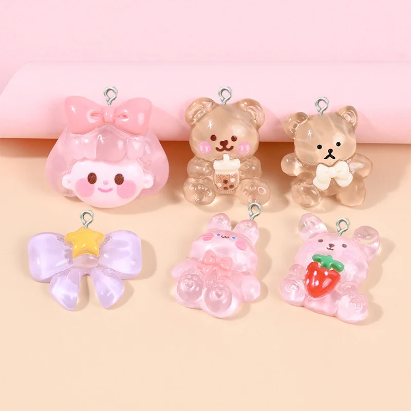 10 шт. кавайная девочка, кролик, медведь, кабошон, подвески из смолы для сережек, ожерелий, браслетов, подвески «сделай сам», изготовление ювел...