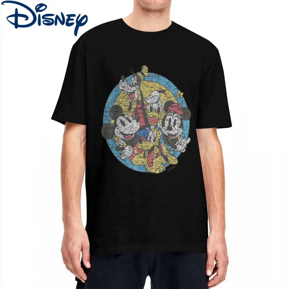 Disney Mickey And Friends футболки для мужчин и женщин 100% хлопок Забавные футболки Crewneck Ретро групповые футболки с коротким рукавом топы Вечерние