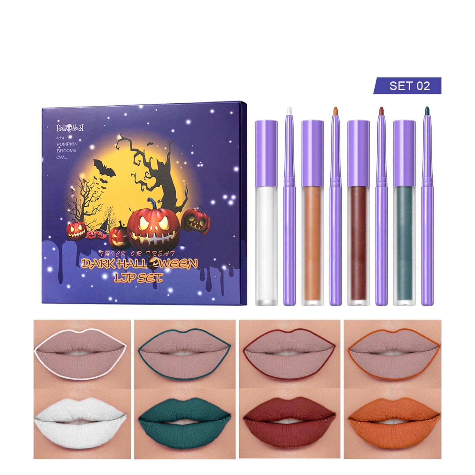 Набор для губ Halloween Creative Lip Color Lip Liner 8PC Silky Lip Makeup Antistick Cup Non Mudgeing Long Lasting Color, 8ML