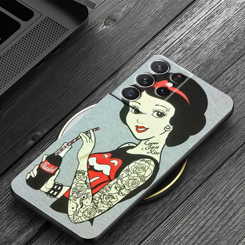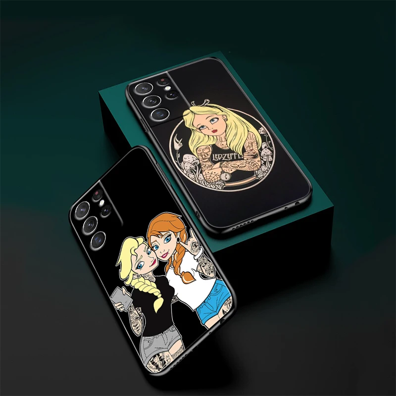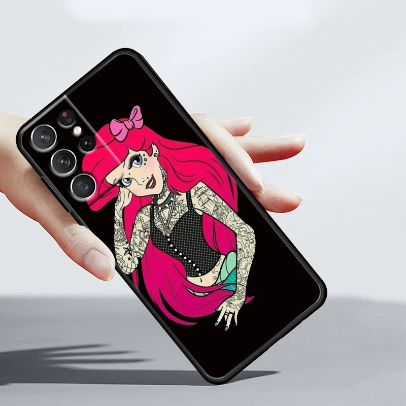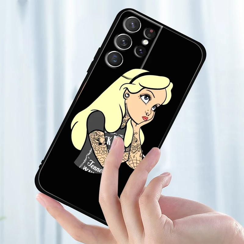 Disney Tattoo princess Case For Samsung Galaxy S22 S21 S20 FE Ultra Plus S10 S9 S8 5G Black Soft TPU Phone Cover Capa Shell Core