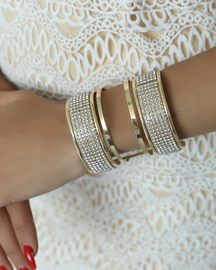 Distinctive Glittering Embellished Open Bangle Bracelet, Gold