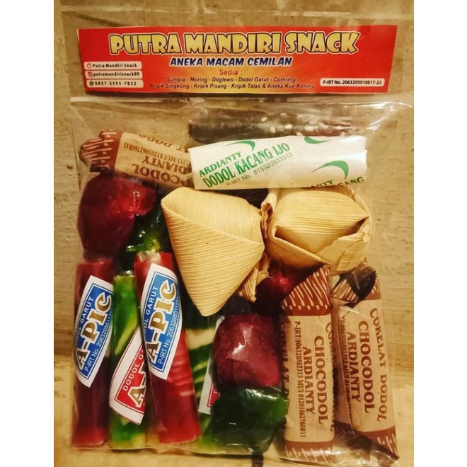 Dodol Garut cemilan khas Sunda dengan varian rasa yang di mix dalam kemasan dengan rasa yang manis ,legit dan lezat.Ini menjadi favorit banyak kalangan orang sampai sekarang.Cocok menjadi buah tangan / oleh - oleh dan pas untuk dijadikan cemilan sehari-hari bersma keluarga ataupun teman.