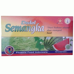 Dodol Semangka adalah dodol campuran rumput laut dengan ekstrak buah semangka. Dodol rumput laut semangka ini adalah makanan tradisional yang diolah dari rumput laut pilihan secara higenis dan dengan standar keamanan pangan. Rasa unik dodol semangka menyehatkan karena mengandung serat rumput laut yang baik untuk pencernaan tubuh.