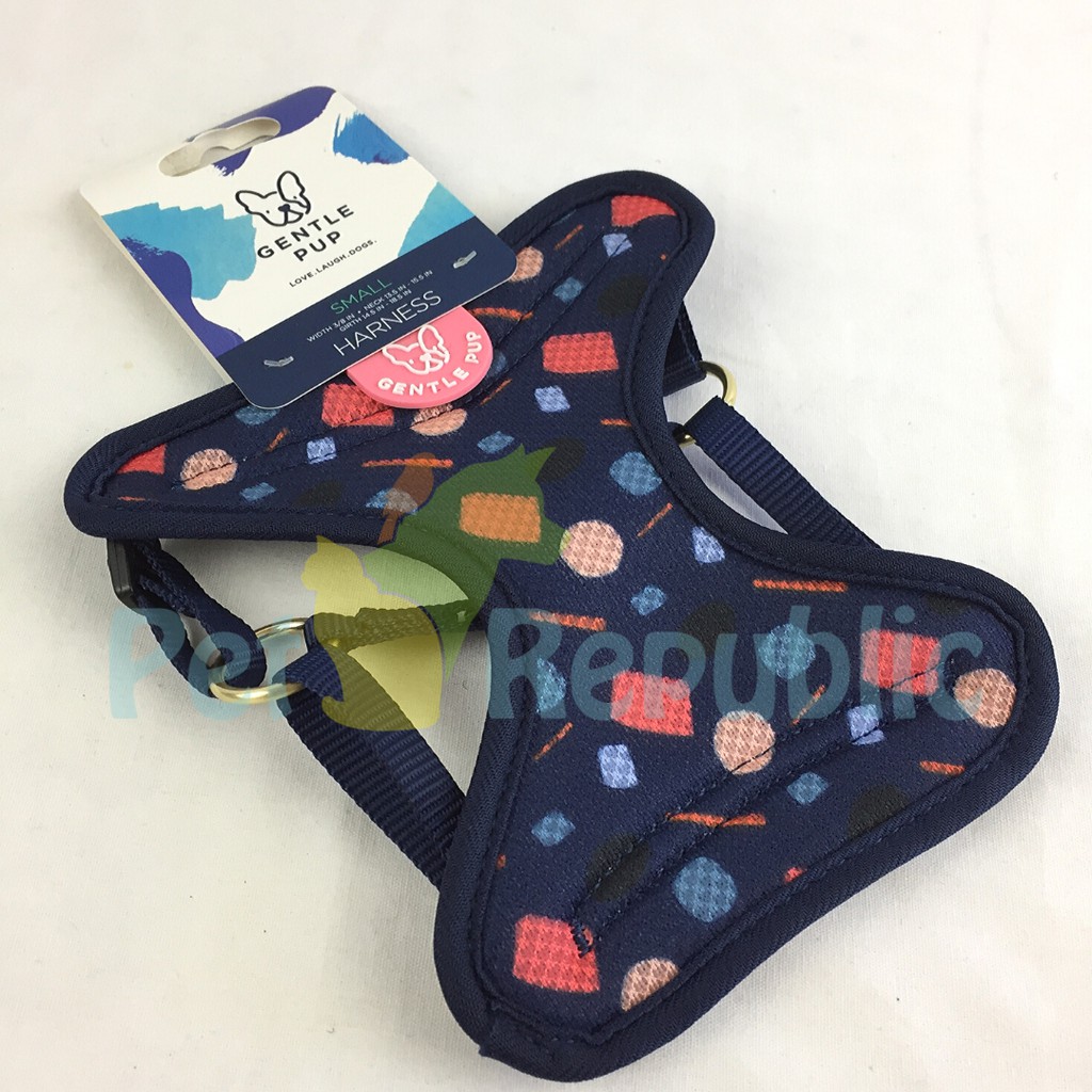 The Gentle Pup Harness is true to its namesake—an easy-slip-on-and-off harness that’s fully adjustable, with soft, knit edging and a cooling mesh inset for your pup’s ultimate comfort. Features webbing straps for easy wearing and buckles with secure snap closure. Perfect for dress down days, special events, and everything in between.Our products are meticulously achieved using innovative heat transfer technology, a process that digitally prints high-resolution images onto a fabric with seamless accuracy. This ensures your favourite patterns and colours really pop!SKIN FRIENDLY. FUR FRIENDLIER.Stay worry-free. The heat transfer process is completely safe for dogs, with no irritation or itching.LONG-LASTING WEAROur prints withstand even the most rigorous play. No cracking or fading—so you stay fashionable even when your dog gets down and dirty.THE HOTTEST PRINTS AROUNDWith superb colour quality and fun prints, you’re completely spoilt for choice when it comes to picking just one. Don’t limit yourself—get a style for every occasion!WATER RESISTANT. WEATHER RESILIENT.Every product is designed with super sturdy polyester, perfect for both indoor and outdoor fun. They are also incredibly easy to clean with water—simply wipe down to remove any dirt or grime and all’s good.--------------------Small – Neck : 34 cm - 39 cm / Width : 1 cm / Girth : 37 cm – 47 cmMedium – Neck : 42 cm - 50 cm / Width : 1.5 cm / Girth : 44 cm – 57 cmLarge – Neck : 50 -57 cm / Width : 2 cm / Girth : 55 cm – 76 cm