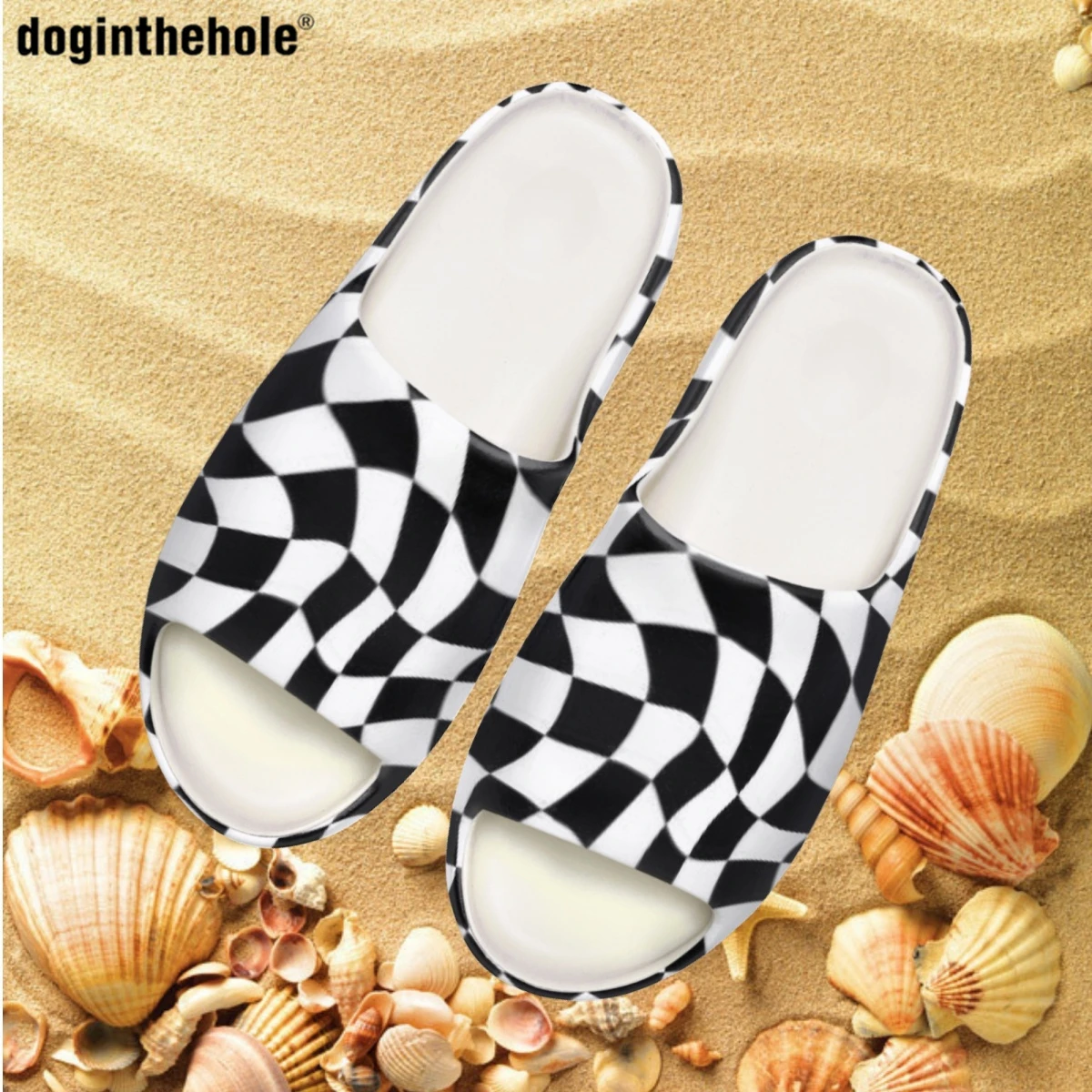 Doginthehole черные белые сетчатые летние тапочки для женщин домашние Нескользящие кокосовые тапочки для отдыха пляжные слипоны