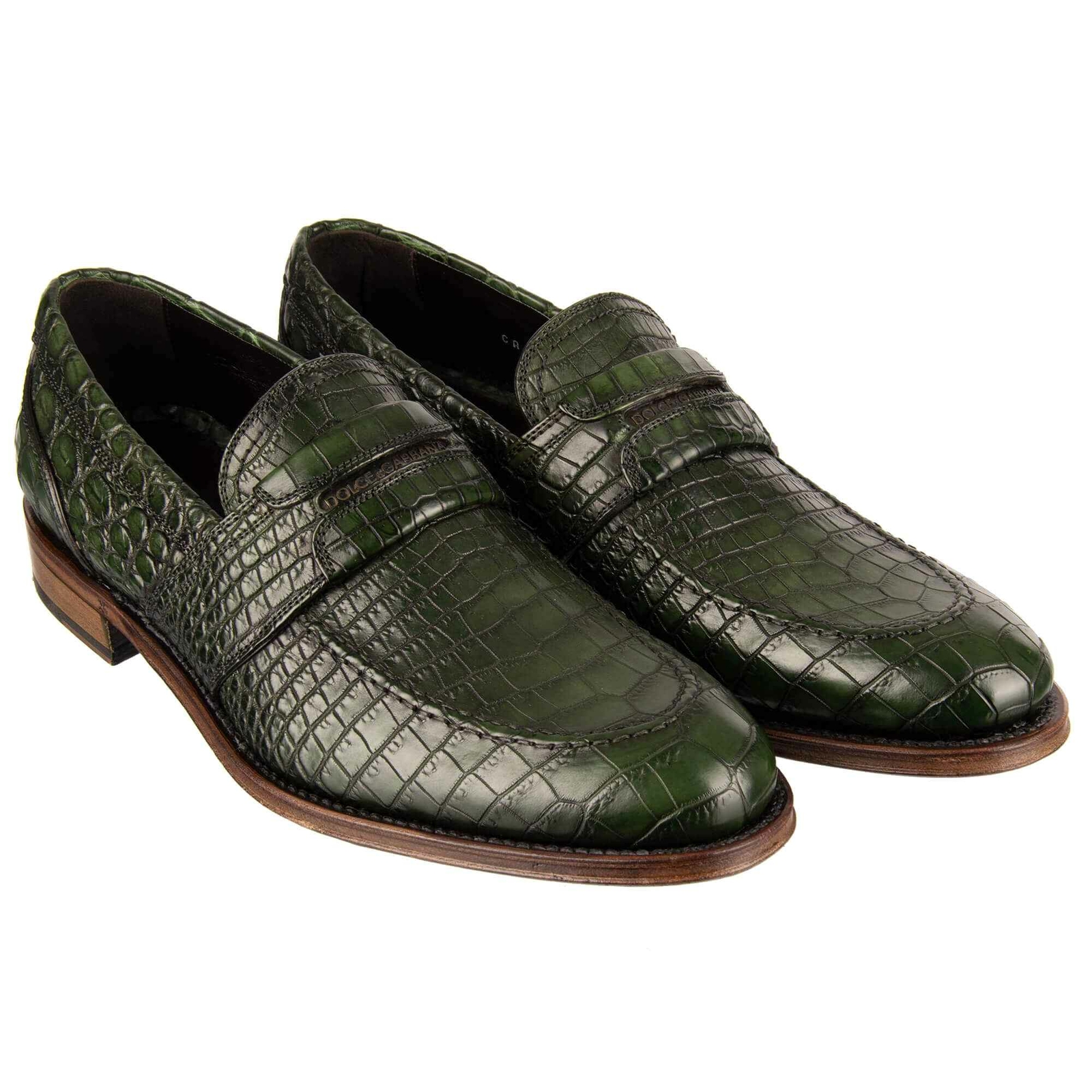 Dolce - Gabbana Лоферы из крокодиловой кожи Туфли Napoli Good Year Green 08841, Зеленый