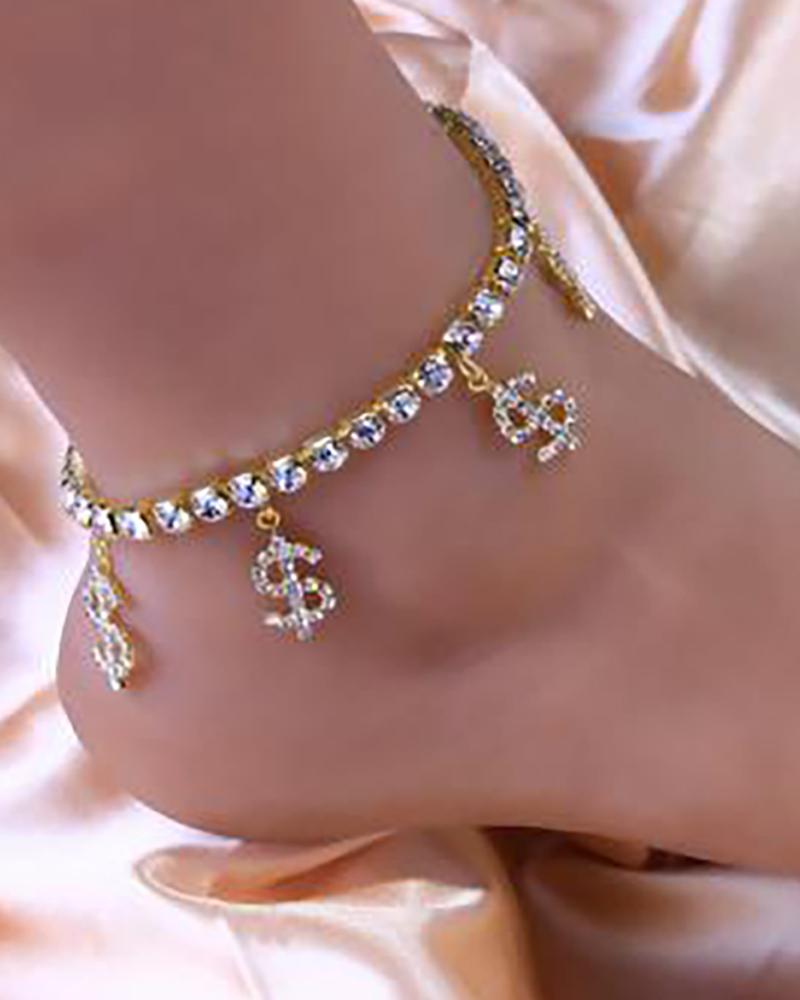 Dollar Pattern Studded Charm Anklet, Silver