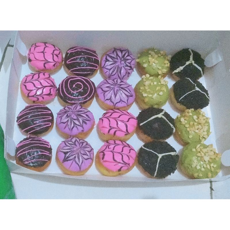 donat mungil 1 box isi 20pcs, toping bisa request. chat ya