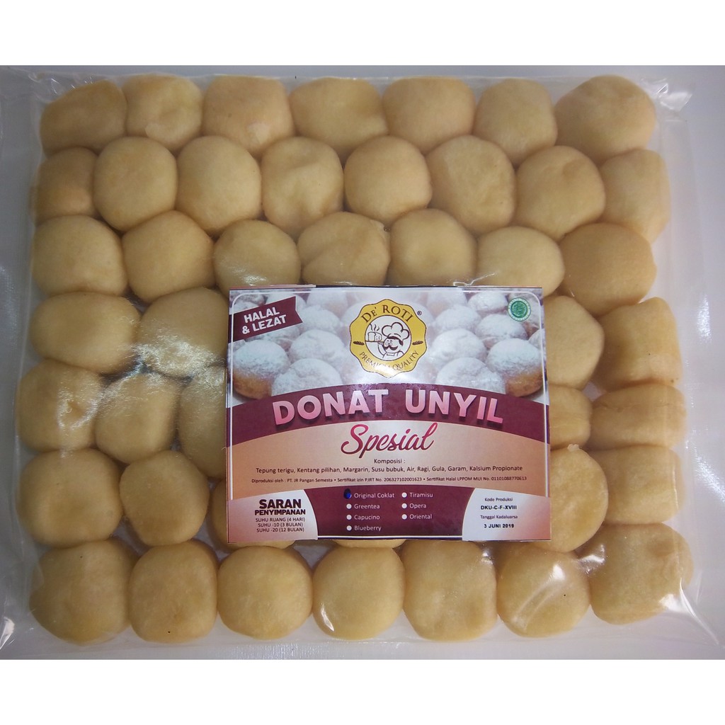 ###Donat Unyil satu pack berisi 50 pieces. Bahan-bahan utamanya terbuat dari Kentang, Bubuk Susu, Margarine, Tepung Roti.