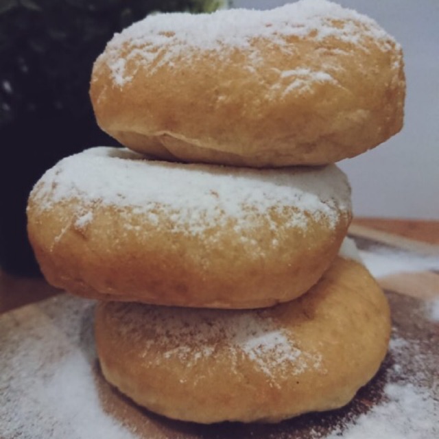 Diamkan donat di suhu ruangan kurang lebih 1 jam (sampai donat tdk saling menempel), lalu Goreng di minyak panas dengan api kecil.