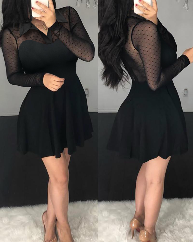 Dot Sheer Mesh Ruffles Ruched Dress, Black