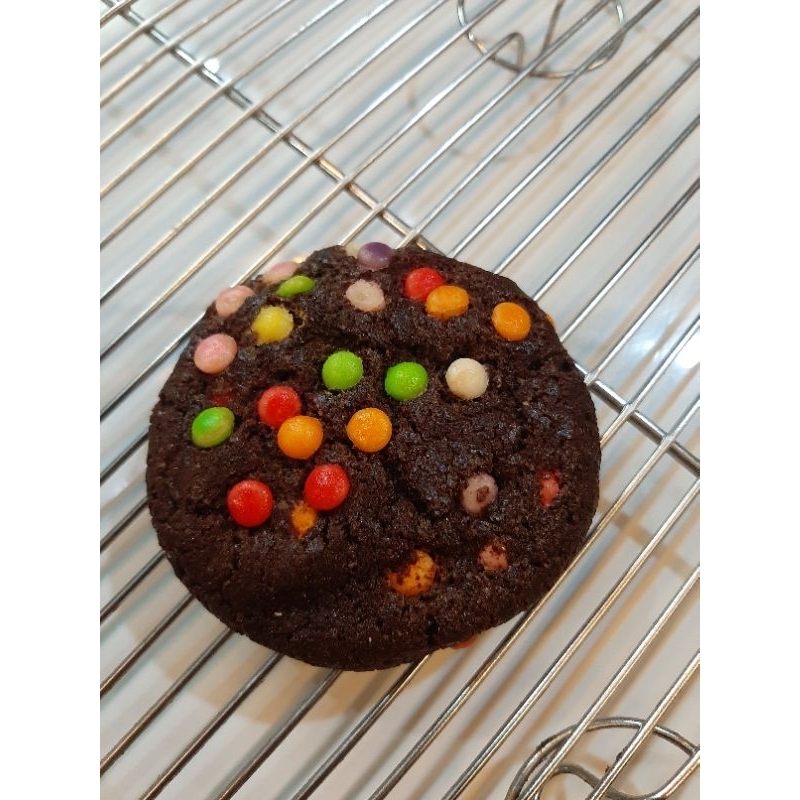 Chocolate cookies with colorful Chocochips. fresh baked.